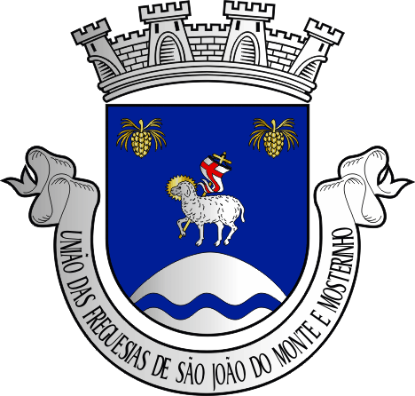 Armas - Escudo de azul, Agnus Dei de prata, nimbado de ouro, sustendo vara crucífera do mesmo, com um lábaro de prata carregado de cruz firmada de vermelho; em chefe duas pinhas de ouro com pé e agulhas do mesmo e, em campanha, monte de prata, firmado e movente, carregado de faixeta ondada de azul. Coroa mural de prata, com quatro torres aparentes. Listel de prata com a legenda a negro, em maiúsculas “ UNIÃO DAS FREGUESIAS DE SÃO JOÃO DO MONTE E MOSTEIRINHO ".